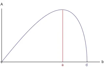On peut déjà voir, dans cette équation, que l’aire ne dépend pas que de la diagonale, mais bien aussi de la longueur des côtés. Afin d’avoir une meilleure idée de ce comportement, on peut dresser un graphique de la fonction A(b).