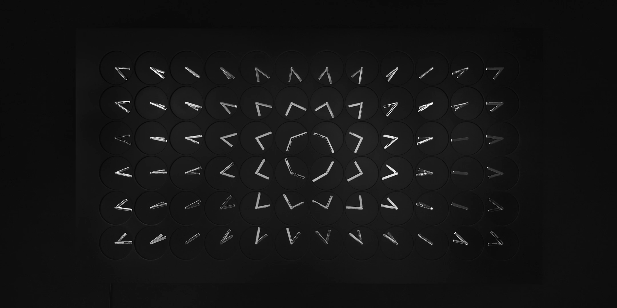 L’agence suédoise de graphisme Humans Since 1982 a récemment mis sur pied une installation qui reproduit l’affichage d’une horloge numérique à l’aide de 24 horloges mécaniques. Une horloge d’horloges, donc, et c’est justement le titre de cette invention.