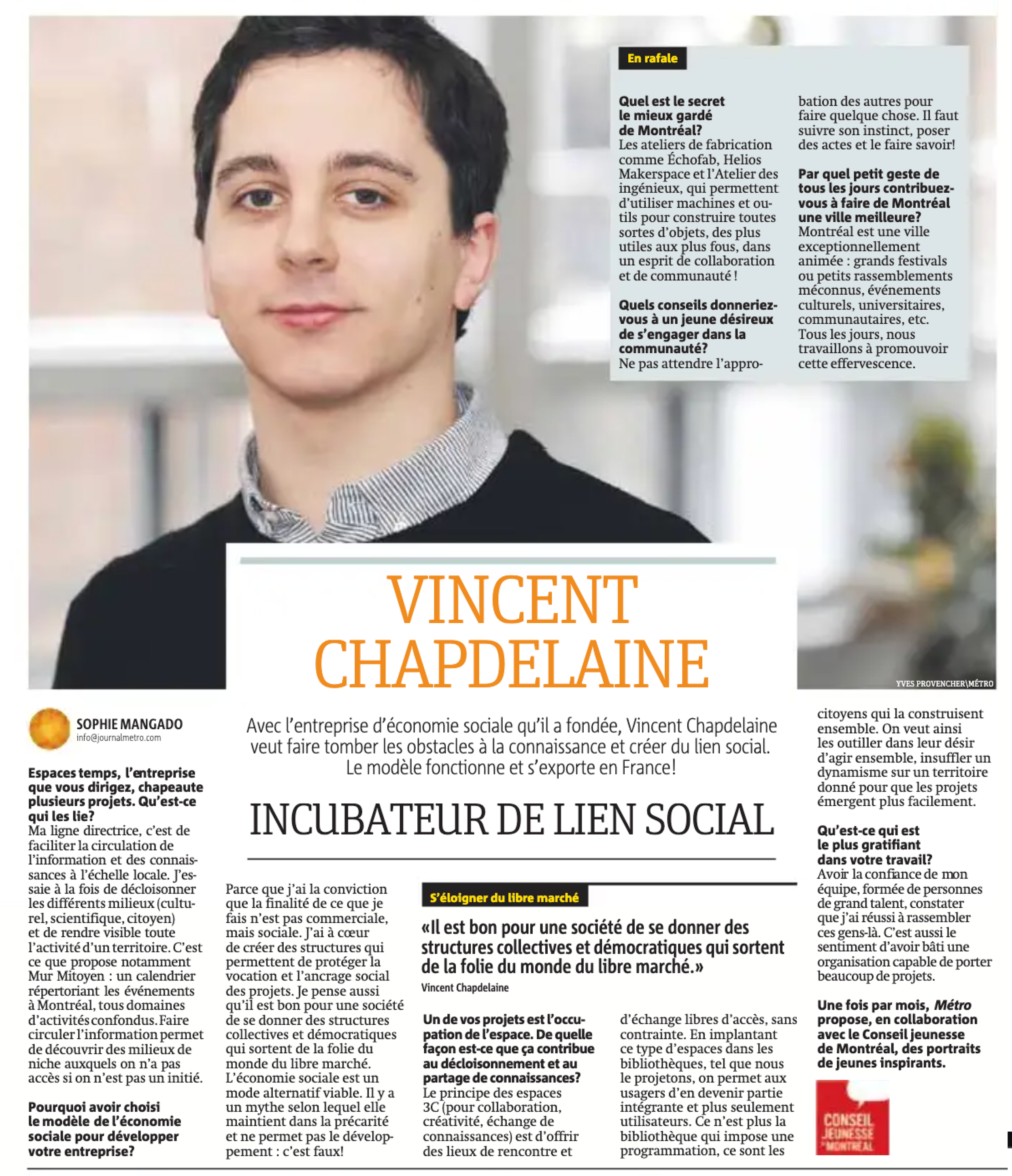 Vincent Chapdelaine: incubateur de lien social